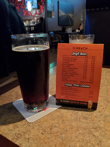 Read moreI felt like a change so hit the Reach tonight for a glass of red and the Friday steak & prawn & caesar salad special for $17.95. Within a minute of sitting at the bar a server (whose name I didn't get unfortunately as I expected it to be on my bill but it wasn't) greeted me with a smile, wiped the bar down in front of me and slid a coaster onto it. Three for three so far. She continued to nail it throughout my time with her friendly attentiveness and perfect timing. It's such a thrill for me to experience five star service. Thank you! I'll be back. I gave four stars for atmosphere because every single one of the nine screens I could see from where I was sitting was showing sports. I would have loved just one showing music vids to accompany the background music. I gave four stars for the food because it was good, fresh, flavourful. I particularly enjoyed the prawns, which were tender and delicious. The bacon bits on the salad were homemade but the croutons weren't.The steak was cooked to medium rare as ordered but I had to spit several chewy bits out which is typical in my experience for a steak at this price point but overall a good meal for the price and...
