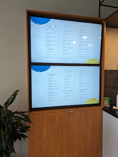 The coffee shop is a decent size and quite clean from a glance. I love their minimal decor which makes it very cute. They have their menu posted outside/through the window so you can take a peek before entering but they also have large tv screen menus inside as well for easy viewing. Service was short but friendly. We were thanked upon leaving as well.