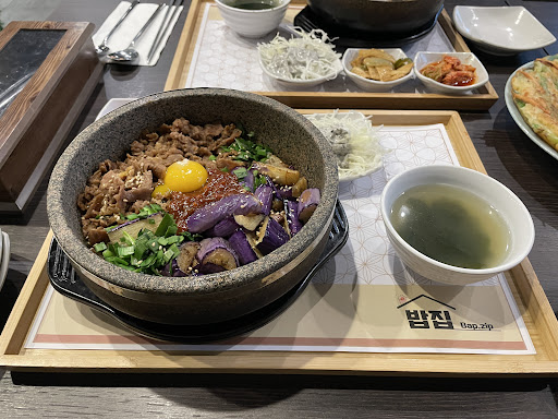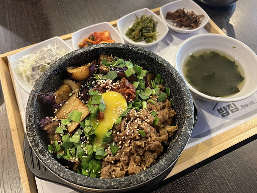 Read moreWe’ve been here twice, and both times we ordered the eggplant dolsot bibimbap. It is a MUST TRY! It is so good and well-flavoured. I’m not the biggest fan of eggplant, but it just tastes sooo delicious. The first time, we tried the hangover soup and mung bean pancake since we’ve never had either before. The hangover soup was good but it was a lot, and I got a little bored of it after awhile. The mung bean pancake was also good and interesting. I personally liked it, but my partner wasn’t the biggest fan. It had 4 pieces, so it might be better to share with more people. The second time, in addition to the eggplant dolsot, we tried the seafood pancake and spicy squid dolsot. The seafood pancake was good but big for two people. It had a lot of seafood like shrimp, squid, and maybe pollock. The spicy squid dolsot wasn’t as spicy/flavourful as we expected. I think the veggies neutralized it a bit. The spicy squid also looked a little different from the image. It was still good though. We ended up taking the pancake and spicy squid dolsot home since it was too much. Overall, I’d give this place a 4.5 if I could. We’d definitely go back to try more things. Also! Something to note, even though the restaurant closes at 8:15pm, it just changes to a bar called Feel90. We were still allowed to chat and eat without rush, but the menu changed and we were informed that the kitchen changed at that time....
