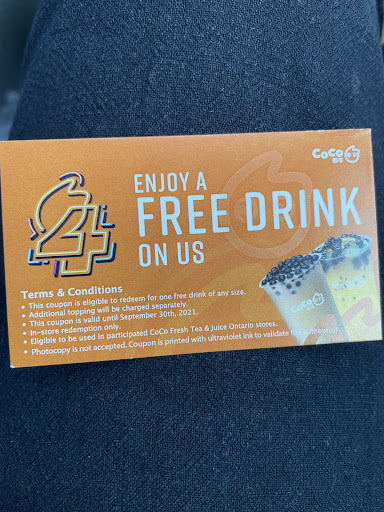Read moreCoco Fresh has opened up shop close to the TD Bank in Markham Town Square. Today (September 11) is their soft opening. They were still painting the exterior of the store but the inside of the shop is pretty much complete. There are signs indicating capacity limits in the store. They have hand sanitizer available, and physical distancing stickers on the floor.