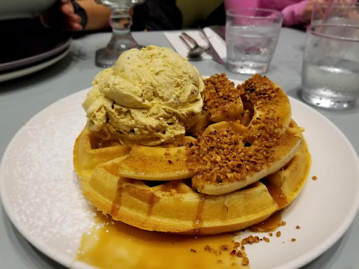 You'll have the option of delighting your sweet tooth with waffles, crèpes, sundaes, ice cream, cakes, and cold and hot drinks. Between 2 and a half of us, we chose to split the UnbruĚleĚvable waffle and a sundae (whose specific name I unfortunately do not remember). I often say that I'm not that much of a "dessert guy", but f*, this waffle was lit. They don't slap you in the face with unnecessary sweetness, (which is the first way to get me to turn away). Instead, they take a ripe, bruĚleĚed banana, drizzle that girl in butter caramel sauce, add a scoop of Dulce & Banana ice cream, and nestle all of that on top of the single tastiest waffle I've had in my life. Now remember; I am NOT a "dessert guy", so maybe your sweet tooth crazy friends have happened upon a better waffle, (in which case, please tell me where), but I stand by this waffle. It's not as if they add extra fruit flavour, (or crack). They just serve you a standard waffle that has just the right sweetness, and texture that reminds you why good texture in food counts! I actually ordered a plain waffle at the end of the meal, so trust that I'm not kidding.