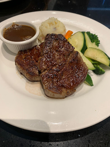 Moving on to my personal review: for the price point of the dish (8oz AAA beef tenderloin) I ordered it fell super short on what I expected as a standard. There's not a damn sprinkle of salt or pepper on these steaks. Just pure beef/steak inherent flavour. The only seasoning is in the sauce but I shouldn't need to be dunking my steak pieces to get seasoning especially as a $50 dish. Vegetables, which I didn't expect to come with my order because the options was "rice, pasta, potato of the day OR vegetables" is straight flavourless, pretty sure just boiled or from frozen. The mashed potatoes at least has flavour and was most likely made in house as there's bacon bits and other goodies within.