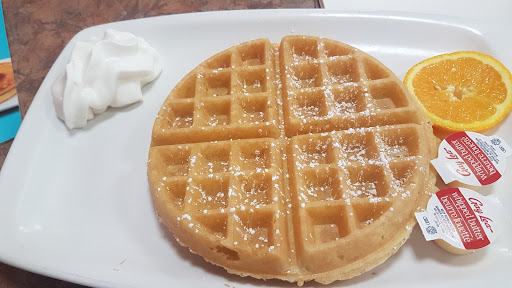 Read moreBest vibe from this place. Staff were super welcoming. Quiet space with news on the tv. Newspapers to read. Cushioned seats. The seating areas felt private and comfortable. The waitress knew all the regulars by name, and their orders. The people in the joint looked at peace, an older lady was slowly sipping coffee as she read a newspaper, a elderly couple came in and were greeted by name, and then asked if they wanted their regular, and like magic 10 minutes later, their regular order was served. A pair of young men sat behind me and talked about buisness, while the waitress refilled their coffee. The menu was bright and colourful, the tables were clean. I loved the tablewear, from the syrup pourers, the coffee mugs, the glazed plates, and all the condiments. The place was warm and smelled of waffles. The waitress brought me a large cup of ice water and a refill. The waffle i ordered was delicious and i loved the extra slice of ripe orange on my plate. The pace was slow, no one looked at you too much, the staff took their time, no one rushed to get you out of there. Just felt right. Definitely felt the place deserved a tip when i was done eating. Very hospitable, and i...