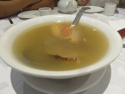 The food was not fresh either, so I'm not sure why it took so long. The Siu Mai was very bland and overcooked. The Fried Chinese Dough Rice Roll was clearly not made in house. It was very soggy and had absolutely no crunch. The Conpoy with Dumpling in soup was disgusting, it broke apart while it was still in the soup and tasted sour as the meat was clearly way past due. I have doubts much of these Dim Sum dishes were made in house as much of it appears to be frozen and reheated to serve customers.