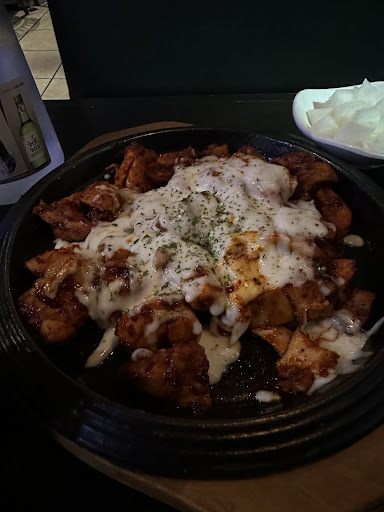 We ordered 3 dishes, half fried chicken spicy $21.99 delicious, and cripsy, spicy rice cake $15.99 I'm not a fan, but my daughter loves it, and spicy tofu and with seafood soup lots flavor and I like that the seafood were bits sizes $18.99. The prices were good! portion was good for 2 ppl. We were stuffed at the end of the meal. Definitely no complaints there.