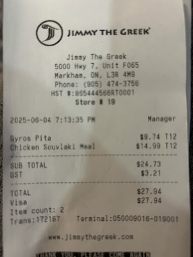 Read moreMy feedback comes with decades of experience at Jimmy locations in the GTA and believe me when I say I want to give this location a higher rating, but simply cannot due to nothing else but the quality of food. I will give the owners the benefit of the doubt as they may or may not have a benchmark against which to measure their food, so here is some feedback I'm hoping they'll take into consideration as I really do want to see this place succeed. For starters, I would recommend they look to their sister counterpart at the Hillcrest location as a gold standard given their food is far and away better than what Markville has to offer. Take the roast chicken -- where Hillcrest's roast chicken is consistently fresh and the meat is never dry, Markville's is always dry and stringy with the consistency akin to canned meat. The difference is night and day. The only thing holding the Markville location back is the food quality. I know they spent a few months renovating and I'm wondering if that budget would have been better spent on improving cooking methods/quality of ingredients as opposed to the shiny new screens hanging under the marquee banners that do very little to leave...