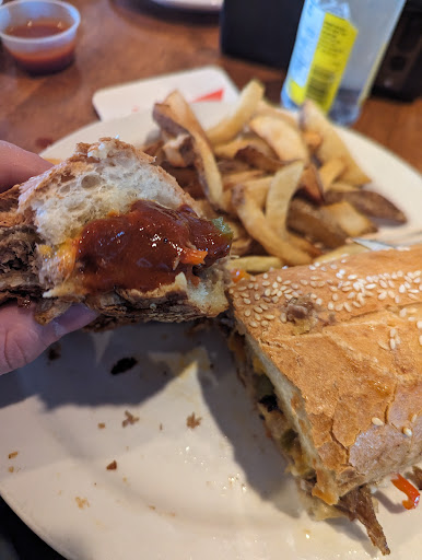 Unimpressed by the food. Arrived around 5:30 pm Friday for supper w/ husband, we ordered french onion soup, beef dip with fries, and English style fish and chips. It was bland and/or soggy. French fries were soggy and greasy, like the fat in the fryer wasn't hot enough. Beef dips are supposed to come with a denser bread with a crispy crust, after all, you are going to dip it in a liquid, it needs to be able to stand up. The bun they used was soft, like a hamburger bun and the bottom was already soggy the first time I picked it up. The beef was beef, I'm not sure they used any seasoning. The jus was flavorless, husband thought it came out of a can. The soup was ok, I've had better, husband had same comment about the fish, he has had better. When the waitress came around to ask how things were we started telling her about the fries, she said yes, that is the nature of the potato, it doesn't crisp up. No effort was made to address the fact that we had just clearly said we didn't like it. We didn't bother mentioning...