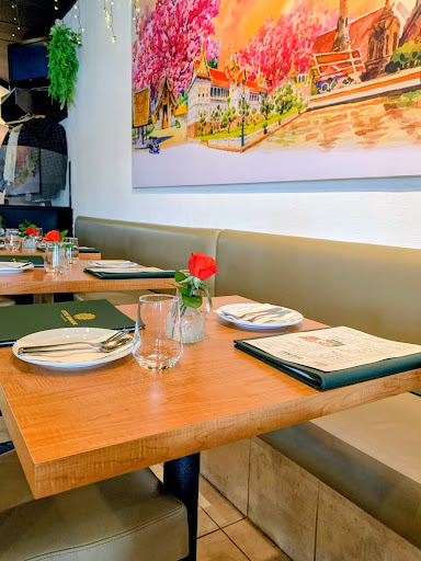 The atmosphere is set by the breathtaking decor, starting with the beautiful twinkly lights on the ceiling that cast a warm, soft and romantic glow over the entire dining room. The attention to detail is exquisite, extending to the impeccable artwork and sculptures on the walls. From the thoughtful layout of the restaurant and comfortable seating arrangements to the small, elegant touches, like the beautiful, fresh flower rose in the center of the table, every element works in harmony. The beautiful decor makes you feel less like a guest and more like royalty for the day. Whenever I bring company here they're incredibly impressed by everything about this restaurant.
