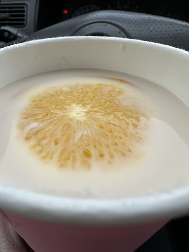 What really caught my attention was when I was pulling the seal off my jasmine oat milk tea, there was a thick slice of orange giving an additional level of flavour to the tea.