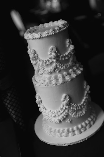 All this to say, Ms Sweet Tooth’s cake was not disappointing. Our wedding cake was moist, flavourful and delicious. The buttercream was not too sweet but not too oily/buttery with the absence of flavour. I asked for the Fiori Di Sicilia flavour cake (citrus, with notes of orange & vanilla) with vanilla icing and pistachio crunch filling and pastry cream. In discussing our options she told me that she had never done that specific cake/filling combination before but thought it would be good. I LOVED it and so did our guests. Everyone commented on how delicious the cake was. It was also visually stunning. I asked for a simple tired cake with vintage piping and with only that brief description and a couple of inspo pics, she nailed it.