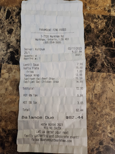 Read morePoor quality and service, overpriced, and small portions sum it all up. Wife and I visited this location to celebrate our anniversary. From our past experience at other locations (Scarborough, Toronto, Mississauga) we were hoping for good food and service. We went to this Markham location around 6:30 PM on Saturday, it was quiet busy but they seated us right away, we didn’t have any reservations. Within few minutes a young lady came over to take our order, she had a strong body odor (probably due to sweating as it was bit hot and overcrowded that day). We placed our order and patiently waited for our food. I took a while before we got our food and when it arrived it was cold. Some items arrived much later; we had to sit there waiting for other items to arrive as we were done with what was on our table. The waiter kept asking us if they can take away our plates and cutlery but we were not done eating so had to keep reminding them that we are waiting on food. There were four us including our kids, my daughter was sitting in my wife’s lap so the server kept asking us if we needed four chairs, she didn’t stop until we gave up our chair. At this point we just wanted to get out of there. We asked for the bill which they brought to us 10 minutes later and we waited for another 20 minutes for someone to come to so we can pay. At that point, I just walked up to the main counter and paid the bill. I spoke to the General Manager Khalid about this experience, he was sorry about the poor service and cold food. He took my contact information and assured me that he will follow through and contact me. It been 15 days and I haven’t heard anything from him or anyone else at the Paramount. Will not to going to this location in future to waste my money. A word of advice, stay away from...