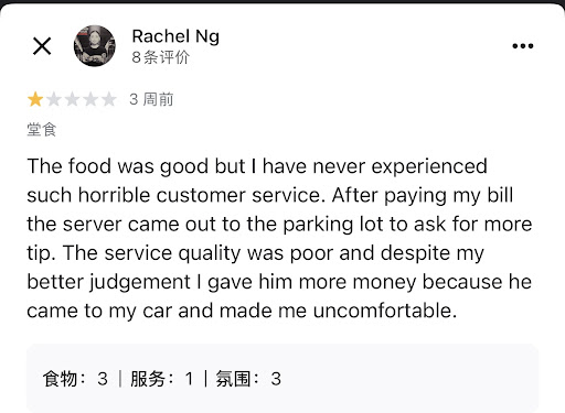 Read moreI am an old customer of this restaurant. I often visit this restaurant. I happened to be dining in the restaurant when the incident happened. I know the whole process. I think I must restore the scene. The incident was roughly like this. On that day, these young men and women entered the restaurant and sat opposite me and talked very loudly, so I have a special impression! When they paid the bill and left, the waiter went to clean up the table and found that they did not pay enough for the bill. At that time, I heard the waiter say that the total bill was more than $66, but they only paid more than $63, and there was still a little difference to make up the total bill. At that time, I saw the waiter quickly walked out hoping to find a group of people to make up the difference in the bill. Because I have worked in the catering industry, I know that the amount they took back was not right and was deducted from their tips. I hope there may be some misunderstandings here, rather than some malicious remarks. And I am very familiar with this waiter. He is a very nice and friendly young man. I believe that his character will not do such a thing. By the way, the tips in their restaurant will not be counted...