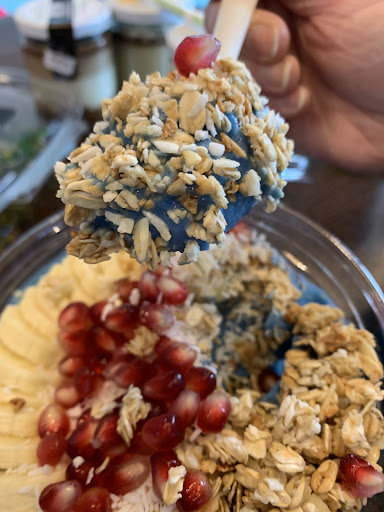 Smoothie bowls amazing! Nice and creamy and loaded with toppings! You’re gonna have a good bite every time from the first to the last!