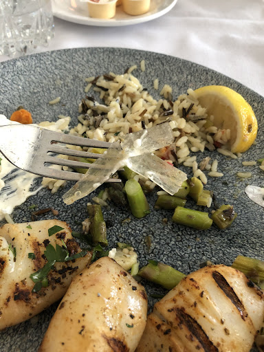 What really did the meal in was my calamari dish. After waiting 1.5 hours for this, I found a packaging plastic film that was grilled along with the calamari! Absolutely disgusting and a health hazard! The portion was also pathetic for a $27 (!) dish.