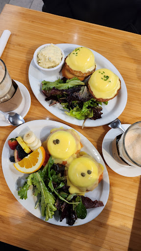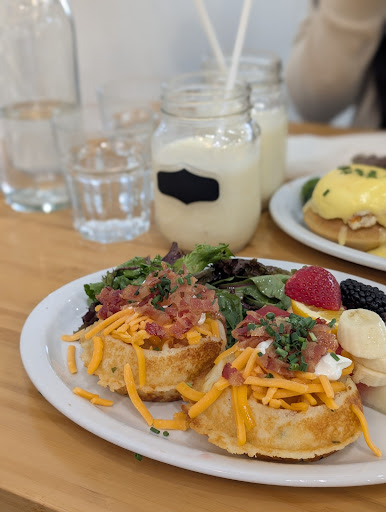 My sister ordered the Halloumi Benedict. She noted that while the waffles leaned toward a sweeter flavor on their own, the combination of waffle, egg, and halloumi was well-balanced and worked beautifully together. The egg was jammy and spot-on in terms of taste, texture, and presentation.