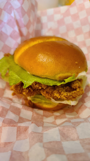 Read moreIf you're in the area and craving a crispy chicken sandwich, then, sure why not stop in. But there are so many other FANTASTIC chicken sandwich places out there that I would travel/commute to specifically for its deliciousness. This sandwich isn't bad but it doesn't stand out for me either. The nice things about the sandwich is that the bread is incredibly soft, the chicken is incredibly crispy, nothing is overly salty and the spicy version does have a kick to it. The elements that make this a mediocre sandwich is that it doesn't have much flavour, there's minimal sauces and toppings but its just basic mayo and lettuce; the meat to coating ratio is not great, the chicken is pounded very thinly so you're not getting a lot of protein and overall, the sandwich is awkward to eat because the chicken folds back onto itself during the frying (this could be just our 2 sandwiches though). The sandwich travels well and was still crispy after a 25min ride home but they do not label the sandwiches or tell you which one is spicy (logic will tell you the sandwich in the red bag is spicy versus a regular white bag for a normal sandwich). As mentioned, this is a decent crispy sandwich but nothing...