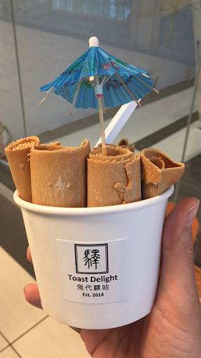 I love Hong Kong-style egg waffles and I wanted to find an authentic one in the GTA where it's crispy on the outside and soft on the inside. Sounds simple, right? But many places get this so wrong, especially how the exterior is just hot and not crispy. At Toast Delight, not only are they correct on the taste and texture, but they took a simple HK street food to a whole new level with creative toppings like pizza and macaroni & cheese on top of these egg waffles! If you want to get fancy, they even have escargot or unagi as a topping!! Before I even got to taste their original flavor egg waffles, I was too amazed by their creativity that I took the jump and ordered THREE different pizza-style egg waffles! As you can see in the attached pics, I ordered the Meat Lovers, Hawaiian, and the Mac & Cheese. All tasted so heavenly delicious! They even come in pizza boxes too (hahaha too cool)!! But if I have to rank them, I'll say the Mac & Cheese is the best from the three I've tasted so far (cheesy but not overwhelming); the Hawaiian would be placed second (that pineapple gave a nice sweet balanced taste to the salty ham); and Meat Lovers third (but being third does not mean it doesn't taste good too!).