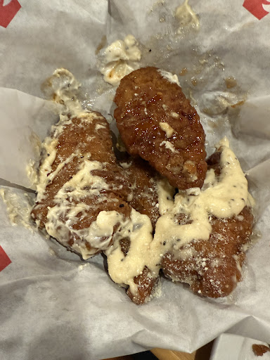 Read moreDO NOT WASTE YOUR MONEY HERE - Came here for the blue jays game because none of the spots near us had any spots available - was surprised but happy we found a spot finally… a gentleman came and dropped off the menus without a single word said - no introduction of our waiter or a simple “hi guys” - no one came to take our order after 15 mins of waiting and we had to eventually put our hands up to grab attention from a server - ordered 2 hot and honey chicken sandwiches and 10 tenders - photos below should explain how inedible the food was and looks…. asked for the bill and wanted to let the employee know that the food wasn’t the best but all he said was “that’s how chicken is” to which i had to take the chicken tender and start pulling, tryinf to cut it or bite it off and it LITERALLY wouldn’t come apart from eachother and he STILL said “that’s how chicken is” - did not take any criticism or responsibility- asked for the manager and a MAXIMUM 23 year old in a t shirt and sweatpants said he was the manager…. HORRIBLE service and food. Wasted $90 and went home hungry. DO NOT go...