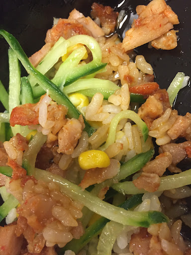 As for the food, I order the bbq chicken with sweet sauce. It was pretty dry. I asked for me and they provided me with a small container of the sauce. It helped. It tastes like refried chicken, sorta like leftovers done at home. It seems to be a rotisserie chicken stripped, chopped and recooked. The flavour is okay. It feels a little over priced.