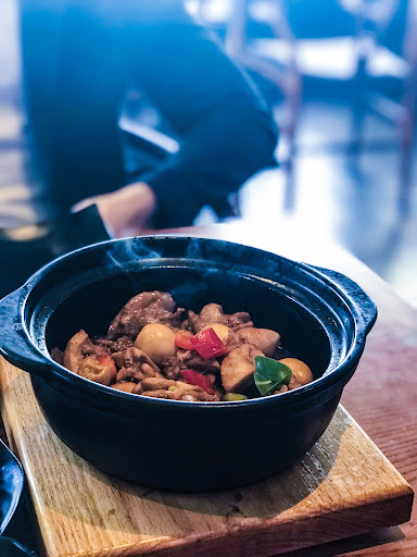 In the past, there were generous portions of chicken and plenty of add ons such as various vegetables and tofu etc. But I've learned the manager has taken those off the menu because the "water content" in the veggies would affect the flavor. I had the "new" version without veggies today and it tasted the same. Also their portion of chicken has been reduced to 3/4 or more of the original. The pots were once elevated above the wooden board, but now are sunken into the wooden board with a flat bottom, to give the appearance of a greater depth.