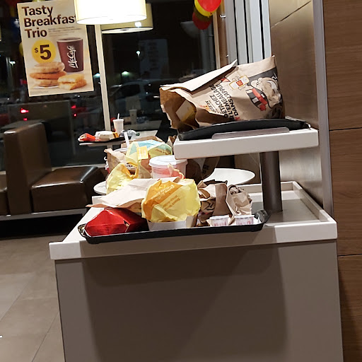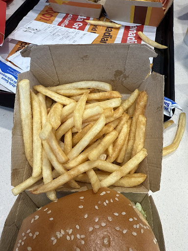 Read moreStopped in for a quick burger as we were passing through town. It was the most sureal experience. The kiosks were busy, so we waited for an employee to take our order. Waited 2-3 minutes for someone to come to the counter. A gentleman finally stepped up to take our order. Nothing to extravagant or extreme. 3 ppl, 3 orders. The lineup kept growing, and more and more ppl entered their orders at the kiosks. We waited... the young man in front of us waited, and the gentleman in front of him waited. The kitchen was silent... no talking, no relaying orders... no hustle and bustle... just odd silence. Food was being prepared, but nothing in the dining room was moving. More and more ppl were waiting in the lobby for their food. Order numbers leaving the 'now being served' monitor, but nothing was being served. A guy went up to the counter to ask where his order was as he had been waiting over 15 mins already, then skip or door dash guy asked where his order was and the employee said something to both of them and a couple mins later they got their food. The young man in front of us waited over 20 mins to get his food and was late for returning back to work. Then our order number was erased from the board, no number called....so my husband asked where our food was...he was told it was ready just waiting to be packed. After 25 mins we got our food. We asked for dine in, yet it was given to us in a bag. There were no ketchup containers or packets or napkins in the lobby It would appear drive thru took presidence over everything else. The buzz in the lobby was all the same chatter...where is our food, what's the hold up. It just an overall odd almost...