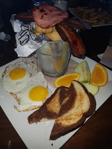 This evening we came in for supper to an almost dead restaurant with our 9 month old baby. The two available high chairs were equally dirty and had no straps to hold the baby in them. Beverages came out in timely fashion and were delicious, per usual. However, my husband ordered his usual, a hungry Jack, which is a burger sandwiched between two grilled cheese sandwiches. He ate it in layers and after finishing the top grilled cheese cut into the burger patty to find a very raw interior. He brought it to the attention of the server who brought it over to a coworker and then back into the kitchen. She returned to the table to confirm the burger patty was in fact raw and offered to remake or remove it from the bill. Subsequently the arrogant bartender loudly announced to the gentleman sitting at the bar as well as the server that the burger wasn’t raw, that it was the marinade and that it wouldn’t be removed from the bill should this happen again. The waitress returned to the table and reiterated this, however, out of the many times he’d ordered this same meal, he’s never had this issue.