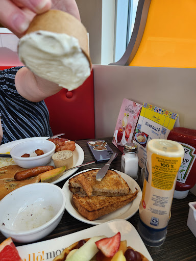 Read moreNous étions 2. Commande très simple. Un oeuf avec bacon et patate cubes et une salade César au poulet. Mon assiette d'oeuf est arrivée (mais pas la salade, c'est plus long à préparer jimagine). Oups! Pas les bonnes patates. Re-oups, 2 oeufs. Ça y est, c'est pas mon assiette. On l'a retourné en demandant de faire mon assiette et l'emmener en "même temps" que la salade parce qu'on aime ça nous manger en même temps. 3 minutes après, ma nouvelle assiette. Pas de salade (comme j'ai dit, c'est long à preparer). Oups! Pas les meme patates. Re-retourne l'assiette et svp, on veut nos plat en même temps. 2 minutes plus tard, la salade arrive. Pas mon oeuf (j'imagine qu'ils refont l'assiette). Non! Ils ont juste swipper ma bouffe pour la 3e fois dans une autre assiette. Oh! Je reçois mon assiette avec la bonne commande dedans. Mais tous est froid (sauf mes délicieuses patates). Ça y est, on peut manger ensemble. Ben, pas moi, parce que c'est pas bon, c'est froid. Et là, notre serveuse est venu nous demande si tout était à notre goût. 😒😶🙄😯.... Et elle m'a demandé si elle devait retourné mon assiette "encore". Bref, 50$ plus tard (parce que ça se paye 3 assiettes differentes), on est partit. Le ventre pas vraiment plein (même après avoir mangé mes patates). J'y retournerai...