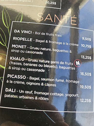 Très beau restaurant avec une allure de bistro, ça fait différent des autres restos déjeuner! Les assiettes étaient parfaites, seule chose: si vous commander le brunch complet habituel, ne vous attendez pas nécéssairement à une assiette aussi gargantuesque que dans certain autres restaurants. Cependant, cela nous convenait parfaitement sachant que justement, dans les autres restaurant, il est rare qu'on réussisse à terminer l'assiette au complet; il y en a toujours trop. C'est pourquoi cela nous convenait autant😊 un petit point dommage est qu'il n'y a aucune banquette, donc même si vous y aller un mardi matin très tranquille, il est certain que vous ne serai pas sur une banquette, chose que je dois avouer apprécier quand nous sommes peu dans le restaurant d'avoir la chance de la banquette même si nous ne sommes que 2 personnes. Aussi, le menu n'est pas si gros, donc si vous chercher à choisir parmi un millier de crêpes ou d'omelettes, ce n'est peut être pas le meilleur endroit pour vous. Mais encore une fois, nous ça nous convenait parfaitement! Nous on peu y aller à pied comme c'est tout près donc on adore😊 Je recommande et les noms des plats sur le menu sont...