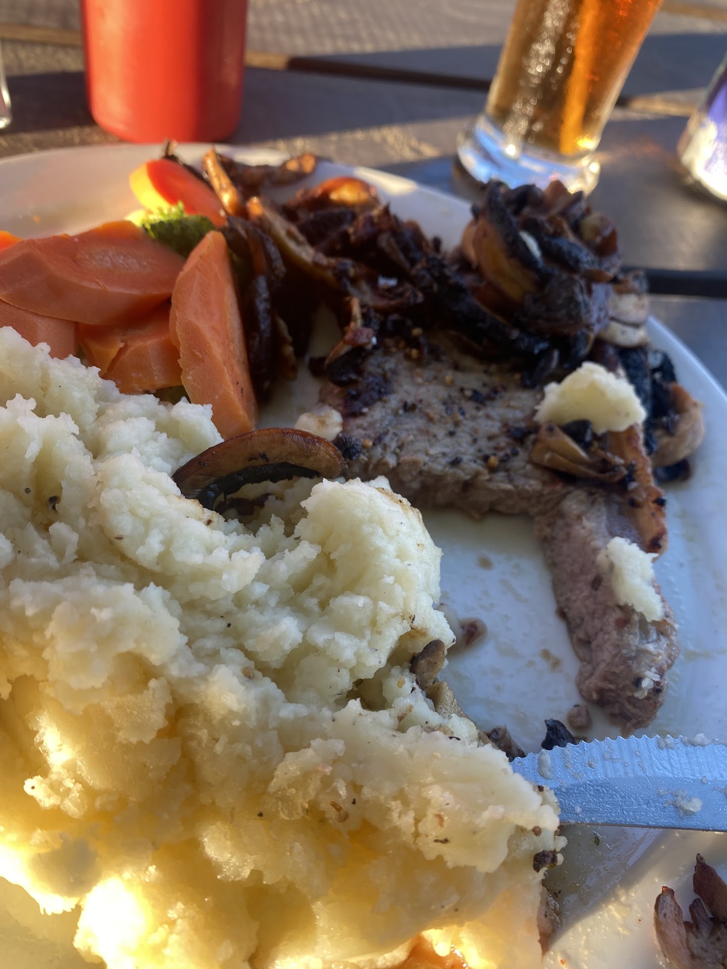The girl at the bar was kind to let me and my husband eat even if it was almost 7 pm and apparently they close at 7 to serve food, which I found strange being in a touristic town. We ordered the only thing we could eat from the menu since we are vegetarians, veggie fettuccine and the food was great. I found strange that we ordered 2 teas and they brought a big pot with 2 tea bags inside, I usually let the bag steep few seconds as I like it light while in the pot was dark and strong and the tea tasted like grass, and in town apparently everyone has the same tea. The second day, since everyone was closed or didn't have a vegetarian choice,(3 restaurant, one closed at 2 pm, the other one is chinese) we came back here, wanted to order the same pasta of the night but menu was different for lunch and we ordered fish and chips and 2 teas again. The girl was nice, the food didn't impress me much with the tons of fries and the white acetic vinegar as a dressing for the coleslaw. I checked the glasses and they were dirty, I cleaned them with a paper towel. I think this place would need more discipline in cleaning, Including the washroom. It is sad to see that people who travel so far and spend so much money for the ferry and up eating in places like this with no knowledge about food or restaurant business and I can say this having had my own restaurant cafe ' and bakery for years. I had no other choice than come here, there are very little options for vegetarians...