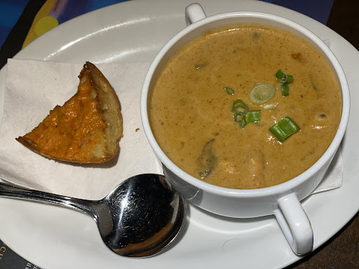 Read moreJ'arrive de mon souper des fêtes de job dans ce restaurant où je vais pour la deuxième et dernière fois. Ce fût très long avant qu'on nous serve l'apéro, le restaurant étant bondé, si bien que ma collègue cru bon de demander à la serveuse lorsqu'elle s'est pointé s'il serait mieux qu'on commande les repas tout de suite? Elle nous assure que non pour revenir s'excuser 30 minutes plus tard pour service quasi inexistant en nous offrant gratuitement des pains froids et des biscuits soda, cadeau de la direction, histoire de nous faire patienter. Quand le repas est enfin arrivé, nous avons redemandé à boire mais les drinks ne sont jamais arrivés si bien que certains de mes collègues dont moi, avons choisi de les faire annuler car nous souhaitions recevoir l'addition et partir. Pour se faire excuser, la serveuse est venue nous porter gratuitement un petit gâteau roulé au chocolat blanc sec, cadeau de la direction.
