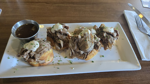 Poutine. CRISPY fries. Those fries were still crispy after being drenched in gravy and cheese curds for fifteen minutes. Hot enough to melt the cheese, and the cheese curds were distributed inside the pile of fries, not just dropped on top. How else are they going to get hot enough to melt, right? Gravy was nice and peppery. I can usually only make it through a half order of poutine, no matter how hungry I am, because they just sit in your gut like a rock. Not these. Not sure why. No rock in gut after eating this pub grub.