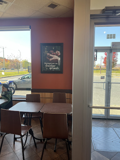Compétences 0/5, communication 0/5, propreté 0/5 un employé s’a mit un doigt dans le nez pendant qui il préparerait un sandwich, (mauvaise commande en plus!), mais l’ambiance de travail 100!! car la musique de reggaeton au tapis et les employés relaxent et la placotent tranquillement pendant que de les 12-14 qui sont au plancher seulement 2-3 travaillent pour son salaire.