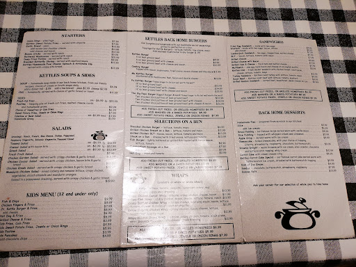 Read moreMy wife and I stopped in to Kettles yesterday for a late lunch / early dinner. The service was okay. The waitresses were friendly and polite. My wife had the butterfly shrimp dinner with french fries and I had the roast beef dinner with home fries. Both meals came with a dish of cole slaw and a dinner roll. The cole slaw was delicious and the dinner rolls were fresh, warm and delicious. The shrimp dinner came with 6 butterfly shrimp which my wife said were delicious. The french fries were standard fare but tasted fine. My roast beef dinner came with home fries which were delicious. The roast beef was very good with no fat however it came with chicken gravy not beef gravy. The gravy was simply poured over the roast beef. I would have liked some gravy poured over the bread slice prior to the roast beef being placed on the bread and then more gravy poured on the roast beef. I found the roast beef to be somewhat dry on the bottom due to this omission. The menu did not state that the roast beef dinner was a hot beef sandwich and I was not asked if I preferred brown or whole wheat bread instead of white bread so I don't know if that was an option. Also the dinner rolls were only available in white and not brown or whole wheat. Both meals came with corn for the vegetable which was okay but a mixed vegetable medley would have been preferred. Minor omissions I know but for these reasons I am rating this...