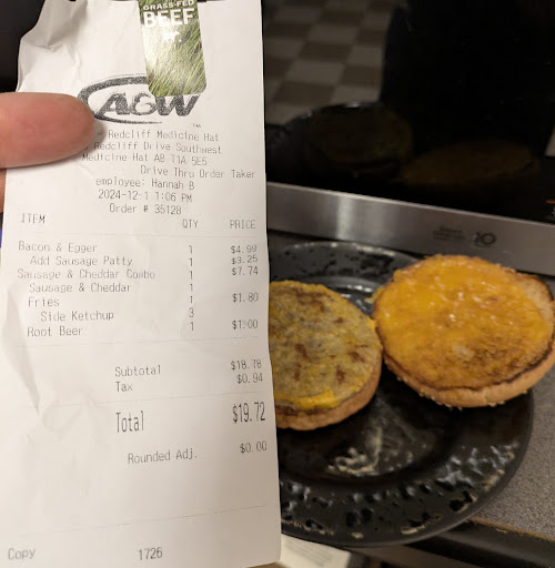 We usually go to this A&W every time we pass through Redcliff; however, after my last incident there, I will not be returning.