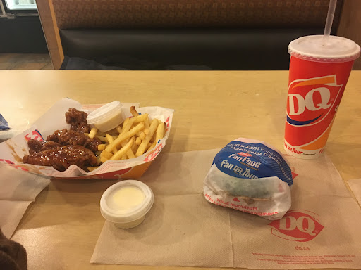 DQ usually cares about the food they share. Not anymore! We were just there and my chicken burger was a tiny grease hardened bit. No mayo. So cold tiny and hard. The pic I took makes it look much better. The actual chicken was no larger than a toonie, surrounded by cold hard over done batter. Tasted like cold burnt oil. The other beef burgers ordered were all cold old and actually burnt all around the very thin patties. Never seen thinner. Disgusting! The pic of one of these is hard to show how thin and old and burnt. Nothing like the ads in the DQ or what we have eaten at other DQs. 🤮 stuck at hotel for a medical trip with gross food and not even any napkins thrown in. The blizzard was like eating ice cream after it lands on a sandy beach! Awful.who? Who blends up skor bits into sand!? I said I like skor bits. Why!!?? Never again! UPDATE: WE WERE BOTH SICK THAT NIGHT! BUT THANKS FOR THE REPLY THAT YOU DIDNT SATISFY...