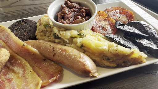 Luckily for us, as we have also been to Ireland and it was Saint Patrickâs day that week, they had Irish specials. I had the a big Irish breakfast, which brought back wonderful memories of our trip. It was absolutely delicious, with black pudding, eggs, baked beans, thick cut bacon, sausage, roasted tomatoes, mushrooms, toast and a delicious bubble and squeak. It was a killer meal! My wife had the Irish eggs Benedict with a potatoes pancake, corned beef, fried kale and a poached egg with fruit and a potato hash.