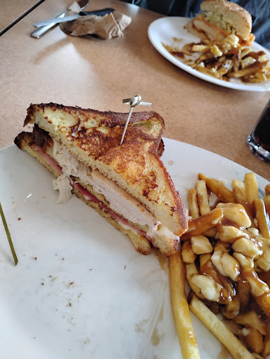 The hostess was nice enough to give us a big enough booth to sit us all and gave us our menus and told us to have a nice day. I was ready to pour over the menu and see what a sit-down restaurant in Canada offers. I was quickly surprised by how many common items were on the menu. Pancakes? Yep. Burgers? Many varieties to pick from. Bacon, eggs, toast? Yup, yup, yup.