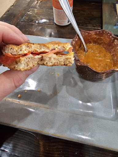 I had the best sandwich that I have ever eaten with their El Gaucho sandwich, which was on a panini that was crispy on the outside, soft on the inside, with spiced, roast pork, cheddar cheese and mayo with what looked like a broccoli floret chimichuri, that finished it off wonderfully. It was absolutely delicious and delightful. My wife had the roasted apple and parsnip soup (with local parsnips), it was smooth, crunchy with apple and gingery from the parsnips.
