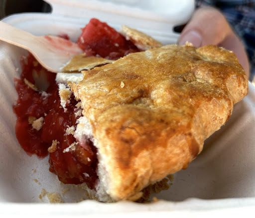 I loved the flavours of the Braised beef dip sandwich, the au jus was delicious and very flavourful with a nice buttered bun. The clam chowder was creamy and tasty and I like how they gave some crackers. As for the turkey club nothing to special about the deli turkey meat, was quite dry over sour dough thin bread. The poutine is new York style russet cut potatoes but they barely added any cheese curds, so I wouldnât recommend to order these but friendly service and not to bad food. As for the strawberry peach pie, wasnât to sour but fresh. Probably wouldnât get that flavour again and Iâll try the apple pie but flaky crust!