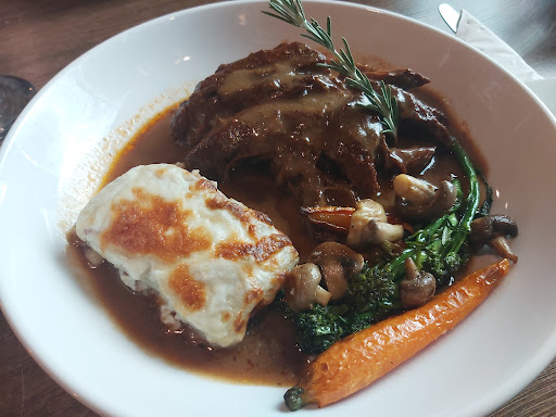 Read moreI took my lady to this restaurant to celebrate our anniversary and so we drove 45 minutes to get there for our dinner reservation. I had booked a table with a water view thinking this would be really nice. When we were ushered in to our table, the room was lit up like as if there were halogen lamps meant for a renovation. Not very romantic and I requested a different table. We eventually placed our orders, chicken caesar salad for my partner and I chose the slow cooked beef short ribs. Started to eat and the chicken was barely warm and very dry! The "mashed" potatoes were no where near what one would describe them as mashed. They were pureed and had a yellowish colour. The vegetables consisted of 3 scrawny, shriveled carrots and 3 broccoli sticks! The evening was totally disappointing and underwhelming. During the course of our dinner, the waitress came up to us and asked how was everything and without hesitation, I mentioned to the waitress my opinion on the quality of the food, especially the chicken and she said that it was out of her control, which of course is understandable as she is simply delivering the food. Went to pay and she mentioned that she removed the cost of the salad, which again, at $18.00 was totally not worth it as was the cost of $30.00 for my meal. The decaf coffee that we had was also lukewarm and horrible tasting and I asked her how long was it sitting there for, to which she replied, 2 hours. I don't recall the last time I was ever this disappointed, but clearly the food was sub-standard and over-priced. Having read some of the reviews, its clear that this establishment is geared for burgers and fries only. Will...