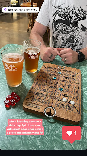 We brought one of our fave games and snagged a few pints and 2 of the best sandwiches weâve ever had - the Cuban panini and the chicken shawarma panini! Both were so fresh, the homemade focaccia is so light but with the perfect crisp, 11/10. I hope they arenât seasonal 𫣠no photo of the sammies as we inhaled them before I even thought to take a photo.
