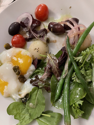 Read moreAlthough I enjoyed the outing and my company, this meal was unfortunately a disappointing one in my opinion. The meal started with " cheese puffs" which were anything but puffy, and were cold and soggy... this set the tone for the entire meal. The second course was the potato leak soup which came out with a smell that reminded me of a nursing home... by this point I'm feeling like I'm at a canteen rather then what i thought would be a fine dinning experience. The third course was a salad lyonnaise topped with a COLD runny poached egg which was weird for me... Runny eggs should be warm and overall was boring. Next we had scallops which were cooked nicely and the sauce was tasty but they were not as described, they were poached and lacking any "golden gratin crust" as listed in the menu. They were adorable in there miniature size i will say however. Then we had what I can only assume was a pallet cleanser which was suppose to be a lemon and thyme SORBET... it was crushed ice with lemon and way too much thyme ... it was funny to see everyone's struggling faces with this one. Now that we had nice cleansed palates, we were greated with a plate that looked like your finest can of dog food poured over lumpy potatoes and a fancy chunk of under cooked carrot on the side that attempted to resuscitate this dying dish.. The taste was incredibly bland once again and lacked even the most basic of seasoning like salt and pepper. Oh how I desperately wanted some salt and pepper! Lastly we had dessert, and I thought surely this would be a treat . Expecting a delicious WARM apple dessert with ice cream, i thought they can't screw that up! Well unfortunately that was also a lunch bag let down. The apple although pretty, was a wet, soggy, cold swirling of apple slivers, with a cold caramel sauce and a melon baller sized scoop of ice cream on the side. I truly was in shock at the quality of the food, the temperature, and the overall feel which was like being at a canteen with the goal of just being fed... nothing special. I love the idea of this place and with better ambiance, decore, timing and some flavorful food, it would be amazing. Perhaps this was just a bad week and I hope that is the case. Unfortunately, I left feeling FILLED with regret and a sore butt from sitting on a firm chair for 3 hours.