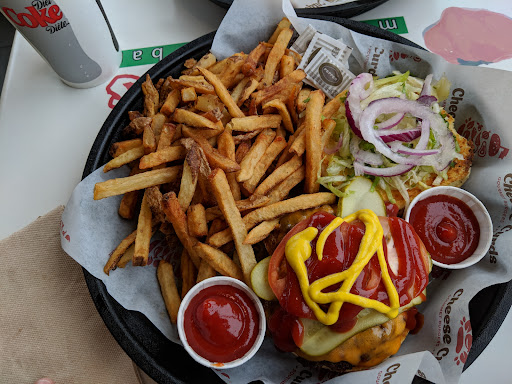 First and last visit here today. I know some folks like it, just my personal experience. Very over priced for ths portion sizes. Got the mozza burger and it said it had a hugs wedge of mozza cheese. No. It has something half the size of a highliner fish triangle. The burger itself once I took that off was okay. My husband got the fish and chips. They did not have any xtra crispy batter so he got original. He said it was alright, but had to eat it plain because their tartar sauce was bland. I tried it as well and there was nothing there for flavor and it was SO thick. My son got some poutine thing and he loved it. However...for a poutine of any sort to be $3 more expensive then a 2 piece fish and chips is laughable. $19 for poutine...no thanks. I also got their onion rings. They get props for those. They were on point. That being said...if you are going to charge people out the who ha for "okay" at best food dont be adding a .25c environment fee to their order without telling them first. This is precisely why your staff got no tip. There was also a woman cleaning the floor around our table...dont really care for dirt flying around while we are eating but I guess thats how they do things. The man who took our order was GREAT! The rest of the staff were very rude in my opinion. Likely just over worked and under paid. For the prices of this place we could have went into someplace nicer lile frank and ginos or fletchers and had actual food for less....