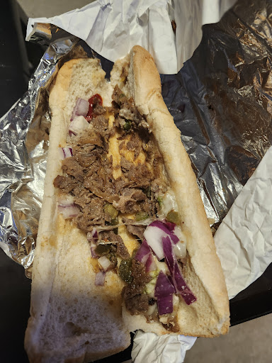 Food was okay, I came here last night just before 1am with my boyfriend & ordered 2 cheesesteaks with poutine. Fries were cold , cheesesteaks was good. The reason why I’m giving it two stars is because we had to wait a bit longer for someone to serve us at the front, the young man came from the back & it seemed like he was cleaning the back. It was a young man with glasses who seems to be working by himself… after cooking the meat on the stove he cleaned and used a dirty towel to wipe the grill then proceeded to put our condiments on our food. I asked him if he could change his gloves as he’s using the same gloves to clean & to touch our bare food. before he did he tried to explain to me that the gloves are clean and didn’t need to be changed. After going back & forth and explaining that what he’s doing is cross contamination touching the grill and touching the dirty towel to clean the grill that I see is clearly black and dirty and THEN proceeding to touch the lettuce, onions, tomatoes etc with the SAME GLOVE he use to clean he decided to change his gloves. Please teach your new workers about cross contamination and to be more sanitary . If customers ask to change your gloves...