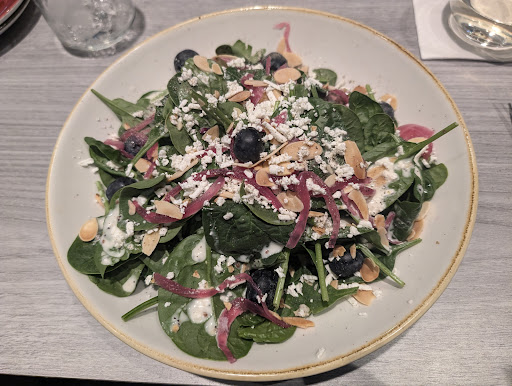 I made this reservation online and then got a call from the manager saying that they weren't in their regular location. They would be in the dining room where the buffet usually is. Most things are closed on a Thursday night right now this part of the season. Our waitress was warm and friendly, however inefficient. Sadly. She didn't offer us water. We placed our order for drinks which she delivered. I ended up asking that same manager for some water. Then we placed our order for food. Both our guests and ourselves ordered an appetizer which she said she would bring first. The appetizer did come. We waited a long long time wondering when the meals would come. When she came to the table, finally, she asked if we were ready to order our dinners. I said we already had which she checked her notes and found that we did. We waited probably another 10 minutes after that for the meals to come. Then at the end when we got our bills she had put our guest's appetizer on our bill. No big deal. My guest paid me for that difference. I really did overtip but in all fairness I always have a heart for servers. Luckily there's lots to see and do talking about upcoming races. Had this been just a restaurant where we were sitting around just chatting it would...