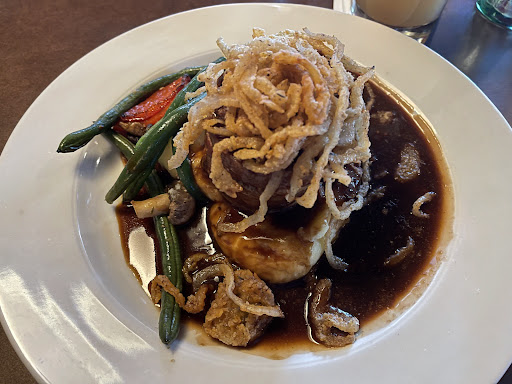 My dish was a bit of a mixed bag. The salad was good, as expected. The soup, however, tasted a bit artificial. Was it made from soup mix? Hmmm, not sure. It was also served with toast, a bit odd, especially since there were croutons in the salad and bread in the soup.