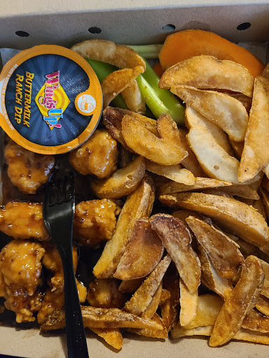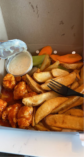 Read moreWalking into the restaurant I could instantly tell what type of vibe they were going for. The arcade machine along with the seating made it feel like a nice restaurant to sit in and enjoy some wings with a group of friends. The service could have been a bit better, I felt that the man working at the counter was trying to rush me because he was in the middle of a conversation with his friends which I didnt mind that much. My food took about 15 minutes to be served, I feel like it could have been a bit faster if they tried but I wasn’t in a rush. Luckily it was worth the wait. The chicken bites were cooked to near perfection internally; it was juicy and tender with a beautiful mild bbq sauce glaze. My only problem was that the chicken wasn’t as crispy as I was hoping and there just was not as many bites as I expected. Although I did order the regular size for around $11, I did not anticipate such a small serving of chicken. The potato wedges were so crisp, each bite was just pure bliss.They were excellently salted on the exterior but lacked a bit on the insides; without any dipping sauce they were a bit dry. The carrots and celery complimented everything very nicely and tasted nice and fresh. And lastly the buttermilk ranch, what is their not to say about the ranch. Everything was just elevated to another level once it was dipped inside. Overall this was a great meal and I will be returning to this restaurant...