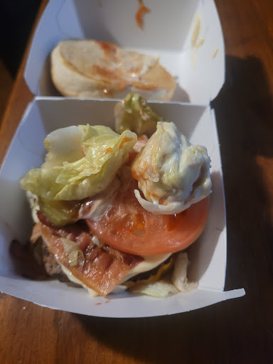 Read moreAbsolutely atrocious. Only giving One star because I can’t give 0!!!!! Out of all the times I’ve stopped here, I’ve had a good burger once. Just stopped tonight too. Ordered a triple burger with fries and onion rings, and some ice tea BS, and a cheeseburger. To start with. They didn’t give me the right burger (this is a common theme at this place and is completely unacceptable) they gave me a double burger. The burger was not warm in the slightest, the bun was stale (I didn’t even know it was legal to serve stale buns) and it had a piece of hair in it. The fries were again cold, and mushy. Almost as if someone else had placed an order, they messed it up, and served it to the next person who ordered something similar. The onion rings were okay. Not really warm but still crispy, and the drink tasted old. Or as of it had a bunch of stuff mixed it, i’m not sure, but it did not taste correct. Secondly. The cheeseburger was yet again, not warm and the bun was also stale. This is unacceptable behaviour from a franchise, and quite frankly some things seem like they border on a health and safety violation. One can only hope that another Fast Food restaurant pops up in town. It’s really needed. The only reason this place has the business it does, is because there are no...