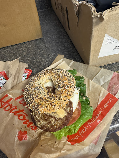 Again with the Tim Hortons like normal no wait time which I like Friendly staff always polite management is top notch never an issue lineup is normally not bad unless A lot of people going at once but other than that very fast service never screws up my order plenty of parking unless it’s a long weekend Then there’s not a ton of parking but other than that, very clean place very well tidy like I said the management is top notch that’s why you’re my number one place to go and other Tim Hortons don’t get The same type of service bathroom is very clean. Floor is very clean. There’s no dust you could eat...