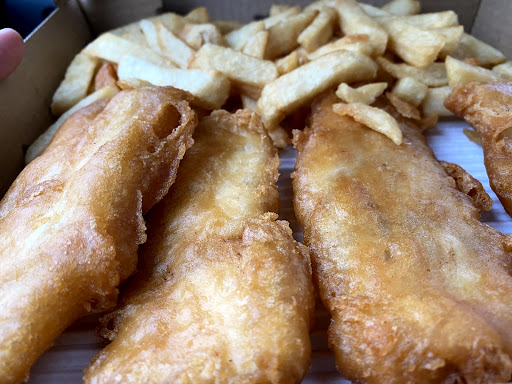 Read moreLovely fish and chips shop with reasonably priced dishes. We ordered the seafood combo with cod as well as the clam chowder bowl. Since they ran out of oysters for the seafood combo, we received a shrimp and a scallop instead. Chips were the fat kind that was crispy on the outside and soft on the inside. The coating for the fish was light and you can really taste the sweetness of the fish inside. The chowder bowl was a bit thin and would’ve enjoyed it more if there were more seafood inside, but it did come with a roll and two butter. At the end, eating this felt like it was too oily and I can really taste the oil flavour, but overall, it was good and worth a visit if you’re looking for English style fish and chips. Their takeout specials are very reasonably priced. I don’t think the eight pieces scallop and chips would be enough to fill up a person because the scallops were the size of a quarter and you’d be eating...